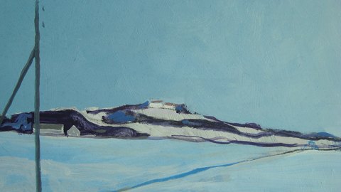 Poul Møller (20 årh): Vinterlandskab ved Børglum Kloster i Vendsyssel. Olie på plade. Usigneret. 37x71 (39x73)