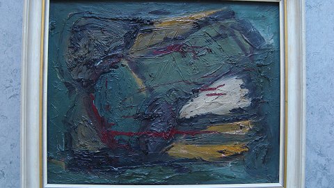 Per Søborg (20 årh): Abstraktion. Olie på lærred. Betitlet - "Hymne" Sign.: Per Søborg (bagpå) 40x50 (48x58)