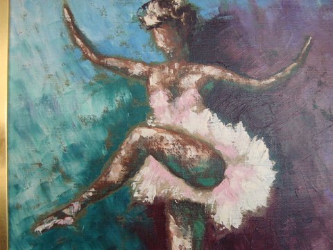 Ubekendt kunstner (20 årh): Ballerina. Olie på lærred. Sign.: V. K.... (Én af mig ukendt signatur - kan nogen hjælpe?) 40x30 (47x37)