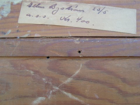 Bagpå udstillingsmærkat - Ellen Byström 23/5.