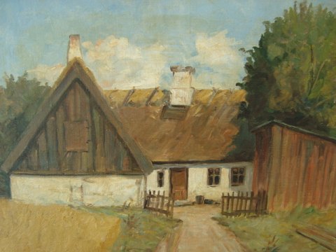 Bondehus ved kornmarker.
