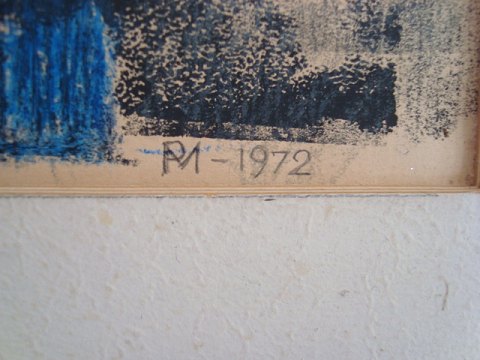Poul Møller (20 årh): Vue udover hustage og master 1972. Pastel på papir. Sign.: PM 1972 (bly) Snavset passepartout - indrammet uden glas. 25x38 (35x54)