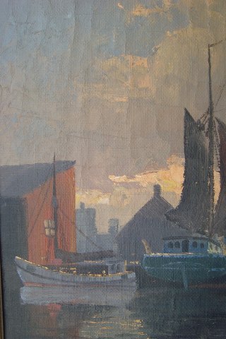 Gustav P. Rimmer (1904-88): Havneparti. Olie på lærred. Sign.: GP Rimmer. Bagpå blindramme - gammelt auktionsnummer fra ABR. 45x58 (52x65)