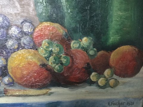Edmund Fischer (1889-1952): Opstilling med frugter på bord 1920. Olie på lærred. Sign.: E. Fischer 1920 35x46 (49x60)