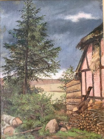 Gavl af bindingsværkshus med brændestabel 1896.