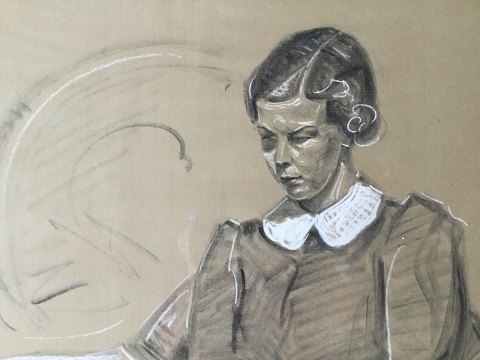 Portræt af læsende og siddende kvinde 1936.