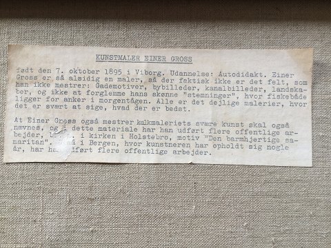 Einar Gross var født i Viborg som søn af marinemaler Frederik Gross - han boede i København det meste af sit liv, men hver sommer kom han til Blokhus, hvor familien havde et sommerhus på den nuværende Grossvej. Gross var medlem af en lille kunstnerkoloni ved Vestkysten der også talte Anders Hune og Axel P. Jensen.