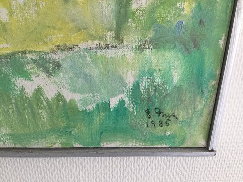 Eigil Moe (1909-89): Landskab 1985. Olie på lærred. Sign.: E. Moe 1985. Bagpå lærred - E. Moe 1985. 65x72 (67x74) Eigil Moe var søn af kunstmaler Andreas Moe.