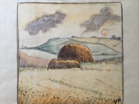 Villy Hartnack (1895-1969): Høstparti. Akvarel på papir. Sign.: VH 24x25 (26x27)