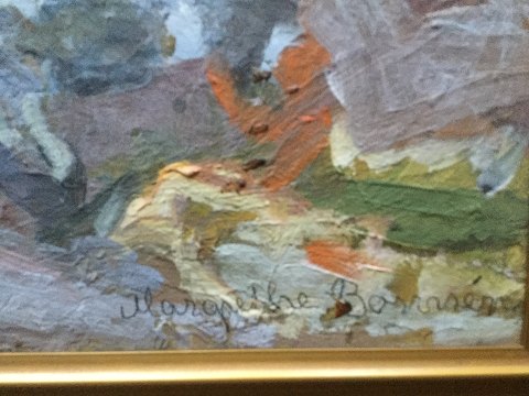 Margrethe Bonnén (1902-91) Kystparti - antagelig Sverige. Olie på plade. Sign.: Margrethe Bonnén. 42x61 (47x66) Margrethe Bonnén var gift med kunstmaleren Folmer Bonnén.