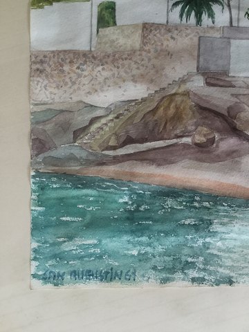 Ubekendt kunstner (20 årh): Parti fra San Augustin 1961. Akvarel på papir. Sign.: Søren ???? Betegnet - San Augustin 61 30x22 (45x37)