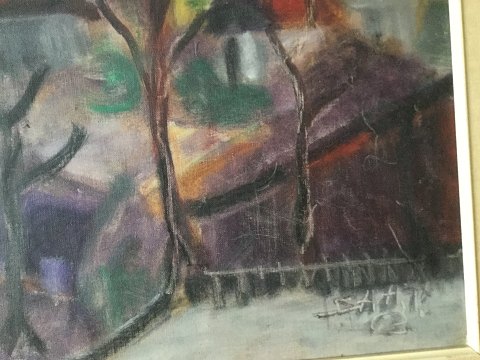 Svend Aage Tauscher (1911-82): Byparti 1963. Olie på lærred. Sign.: SAAT 63. 67x54 (74x61)