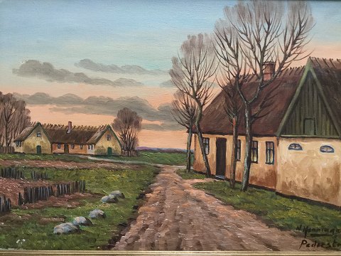 Niels Anders Henningsen (1903-77): Parti fra Pederstrup. Olie på lærred. Sign.: N. Henningsen Betegnet - Pederstrup 33x47 (40x54)