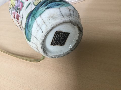 Antik japansk vase omlavet til bordlampe.