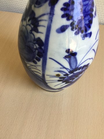 Orientalsk porcelænsvase. Kina eller Japan 19/20 årh. Porcelæn dekoret med blå floral dekoration. Top med "flæse" kant. Enkelt "brun plet" (brændingsfejl). Højde 21 cm.