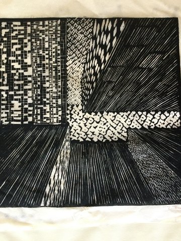 Ubekendt kunstner (20 årh): Komposition. Træsnit på japanpair. Eget tryk. Nummer 1/10 Sign.: J. Th.....? Uden ramme - rester af tape i kanten. 37x35