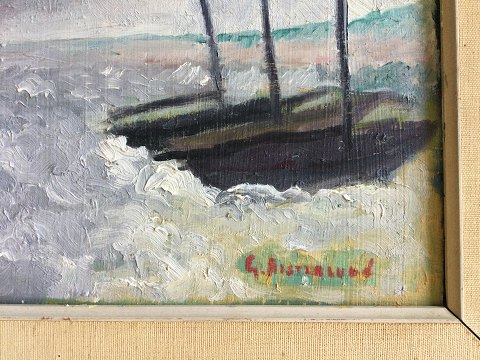 Bagpå - Udstillingsmærkat "Ruskvejr på Svenska ostkusten, nord från Simrishamn"