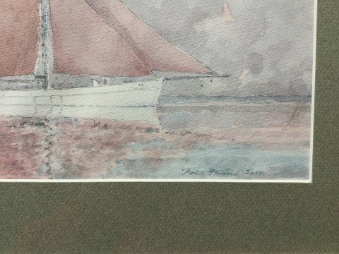Poul Hansen (20/21 årh): Sejlskib på vandet 2014. Akvarel på papir. Sign.: Poul Hansen 2014 20x28 (29x37)