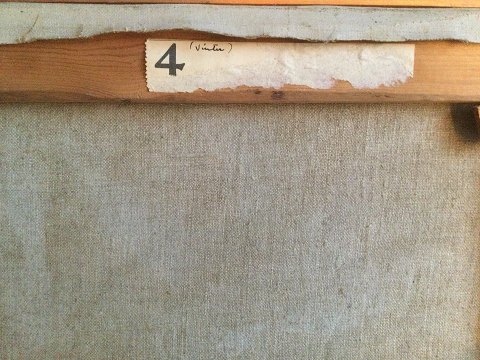 Johannes Dührkop (1903-85): Vinterparti fra Asminderød 1943. Olie på lærred. Sign.: JD (monogram) - 43. Bagpå rester af udstillingsmærkat nr. 4. Lækker guldramme. 55x69 (64x79)