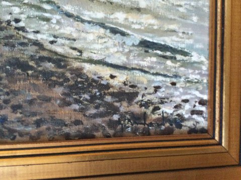 Gunner Bundgaard (1920-2005): Kystparti. Olie på lærred. Sign.: G. Bundgaard 24x30 (39x45) Gunnar Bundgaard