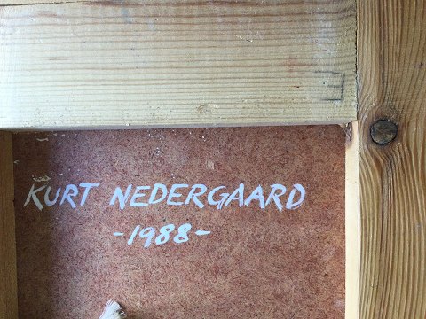 Kurt Nedergaard (født 1945): 2 malerier 1988 "Det Blå Hus" og "Grå Huse". Begge - Olie på plade. Begge - Sign.: KN Bagpå - Kurt Nedergaard 1988 Begge måler inkl. ramme 21x22
