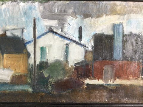 Knud Laursen (1924-2015): Huse. Olie på lærred. Sign.: K.L. 34x58 (44x68) 27622