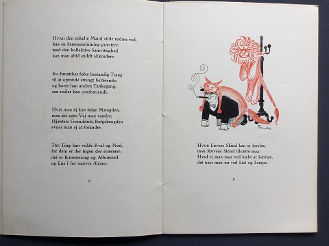 Tekst "Hvor Løvens Skind ej kan forslaa - man Rævens Skind tilsætte maa - Hvad ej man naar ved kækt at kæmpe - det naar man nu ved List og Læmpe".