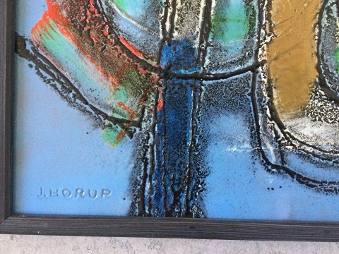 Jens Horup (20 årh): Abstraktion med person. Emalje på plade. Sign.: J. Horup 51x41 (54x44)
