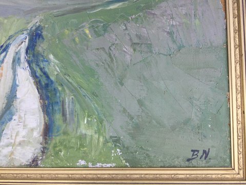 Jørgen Budde Nielsen (1927-87): Sommerlandskab fra Handrup på Mols 1957. Olie på lærred. Sign.: BN Bagpå lærred - Handrup Mols - Budde Nielsen 1957. 70x85 (89x104) 30409