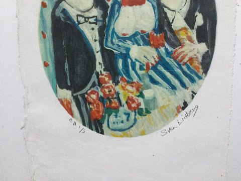 Sven Lidberg (1929-2009): 2 motiver fra festligt lag. farvelitografier på håndgjort papir. Sign.: Sven Lidberg Begge nummer 1/5 30x21 (39x30)