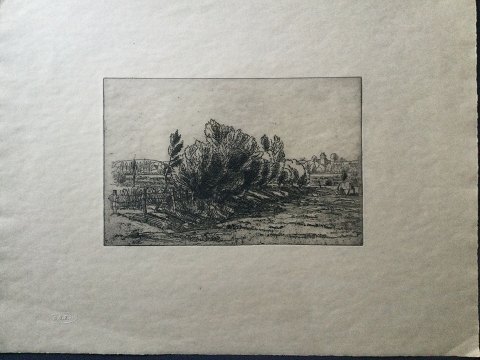 Ernst Zeuthen (1880-1938): Piletræer ved Gentofte Sø 1927. Radering på papir. Sign.: EZ (i trykket) Uden ramme DDRF 1927 Pladens mål 18x27 - arkets mål 38x50 25323