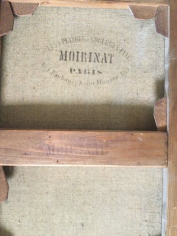 Stempel bagpå lærred fra Moirinat, Paris.