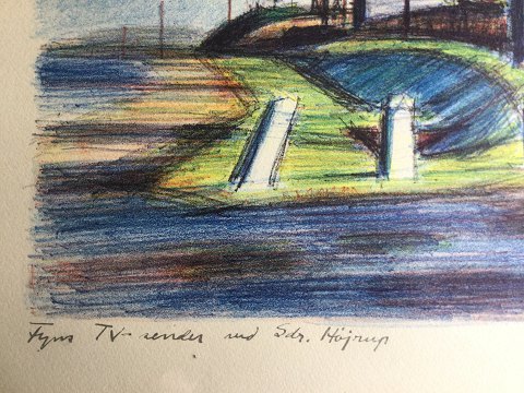 Thormod Kidde (1925-96): Fyns Tv-sender ved Sønder Højrup 1961. Farvelitografi på papir. Sign.: Kidde 61. 36x49 (39x52) 16824