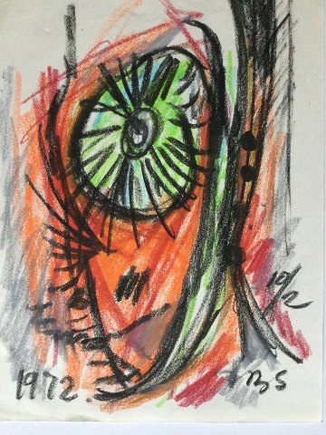 Peder Brøndum Sørensen (1931-2001): Komposition1972. Farvekridt på papir. Sign.: PBS - 10/2 1972. Uden ramme. 30x21