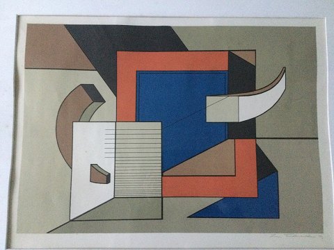 Lun Tuchnowski (1946-2018): Komposition 1973 Litografi på papir. Sign.: Lun Tuchnowski 73 Indrammet med passepartout (Enkelte pletter på passepartout). 45x62 (61x75) 16504