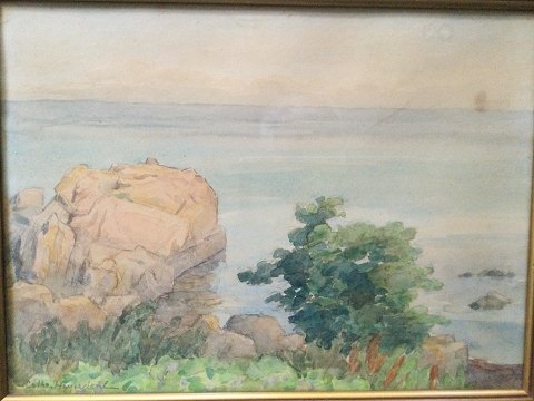 Catharine Heyerdahl (1861-1952): Kystparti med klipper Akvarel på papir Sign.: Cathr. Heyerdahl 26x35 (29x38) 30624