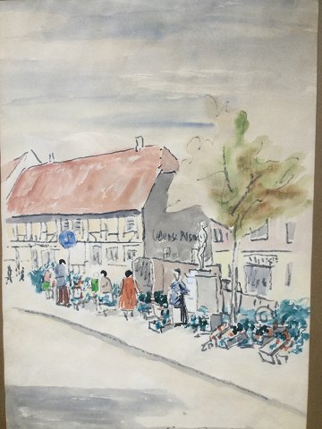 Sigurd Jacobsen (20 årh): Markedsdag i Odense 1959 Akvarel på papir Sign.: Sigurd Jacobsen 1959 57x40 (75x56) 20825