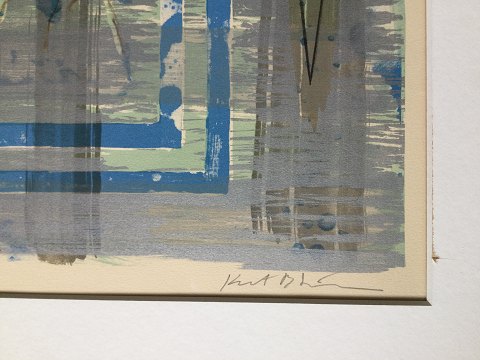 Farvelitografi på papir monteret i passepartout.