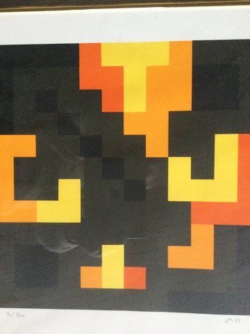 Leif Mikkelsen (1938-2008): Komposition 1991. Serigrafi på papir Sign.: LM 91 Nummer 3/120 Lysmål 51x43 - Indrammet 53x44 30725