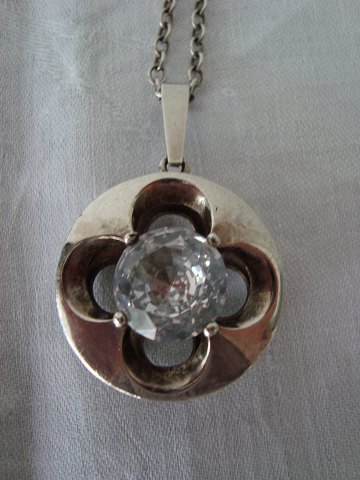 Spændende 60'er vedhæng med perlemor (diameter 4 cm) (kæden 60 cm) (Stemplet for Carl Ove Frydensberg, København, samt Sterling Denmark)(se foto) - kr. 850,00.