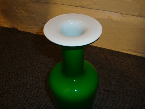 Gulvvase med to farvet glas grøn udvendig og hvid indvendig fra Holmegaard