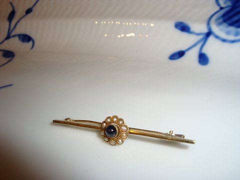 Brooch with pearls and a synthetic stone, very nice and with an extra lock.