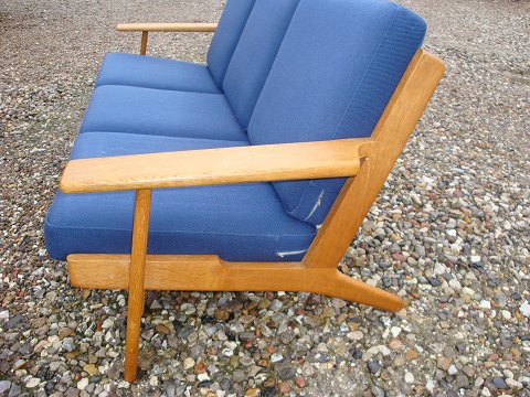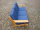 Sofa 3 seater in light oak designed by Hans Wegner with blue wool fabric made ​​from Getama furniture factory in good condition 5000 showroom
