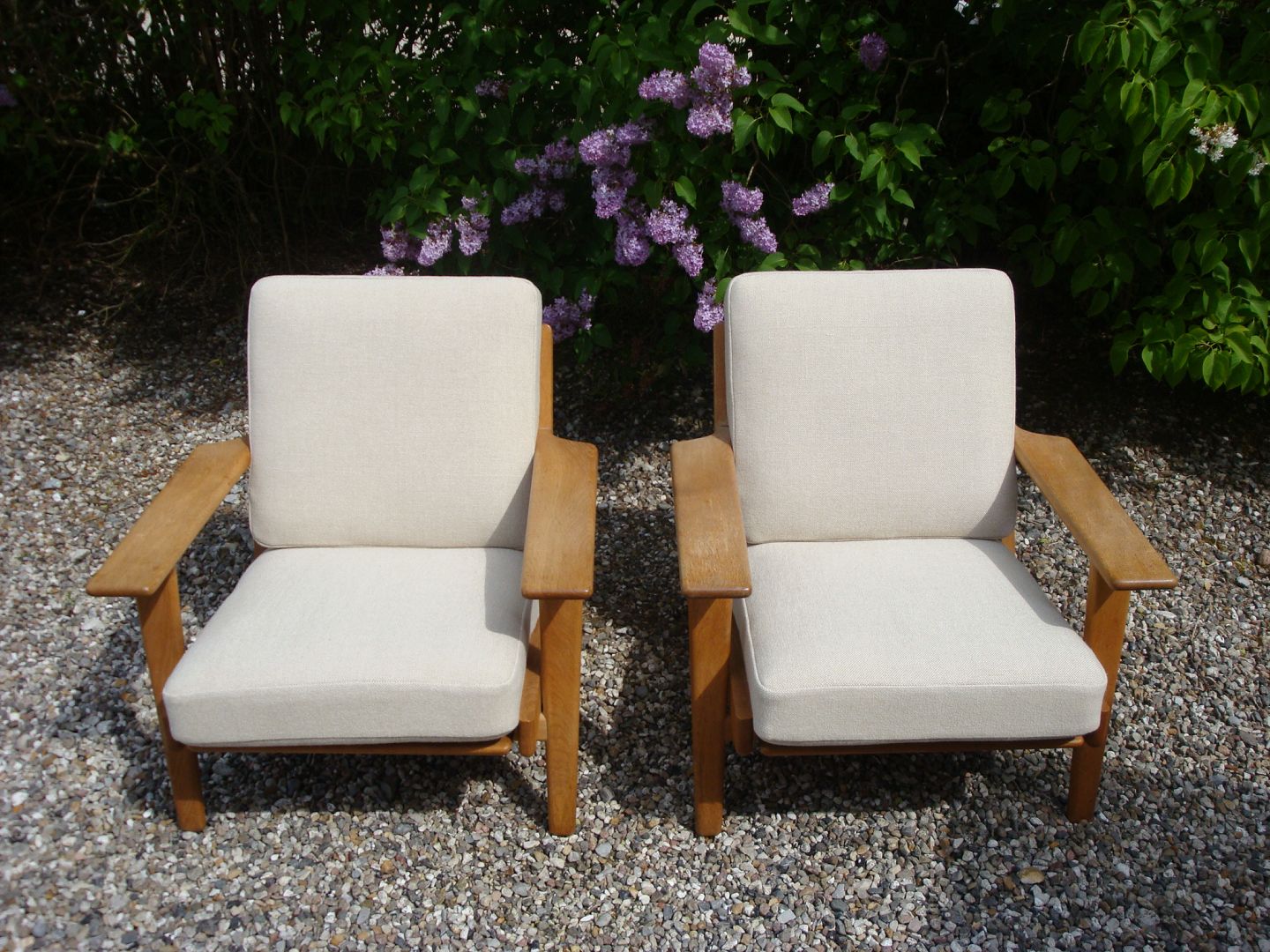 SoldA pair of Hans Wegner chairs Getama GE low model in oak 5000 m2 showroom