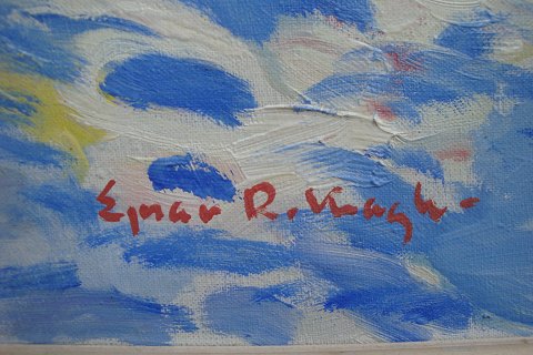 Maleri af Ejnar R. kragh med motiv af badebørn Højde 80 cm * Bredde 68 cm