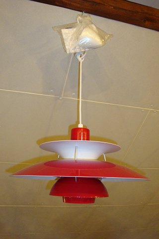 Poul Henningsen loftlampe PH5 i flot rød højglans. Lampen fremstår i perfekt stand og er en udstillingsmodel, sælges med certifikat.