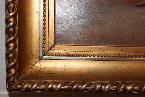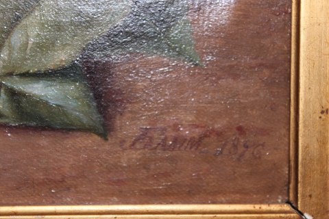 Maleri med blomster og frugt motiv malet i 1876 Damn .Maleriet er indrammet i en yderst smuk guld / sølv ramme. * superkvalitet