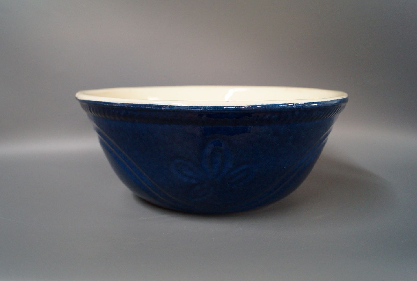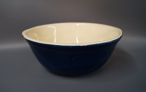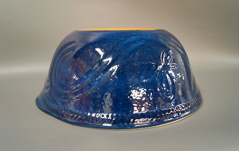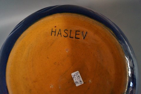 Keramik skål i blå og hvid glasur signeret Haslev.