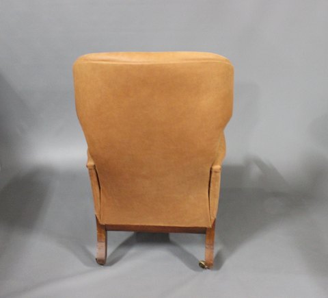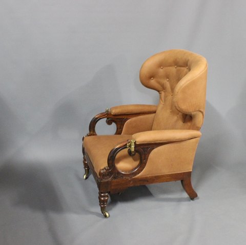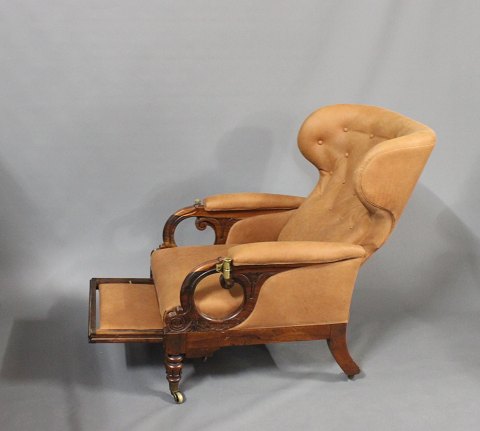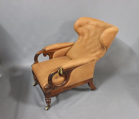 SoldWilliam IV open lounge chair in rosewood and leather with reclining back and sliding footrest by George Minter. The chair is from England and around the 1830s. The chair can be reclined even further.