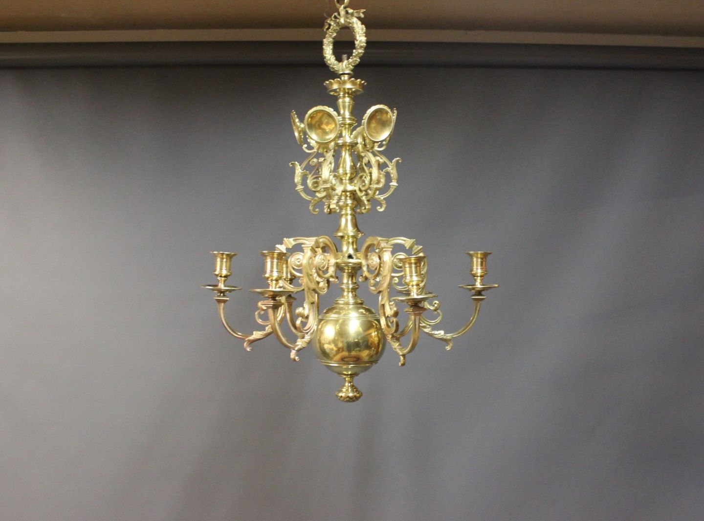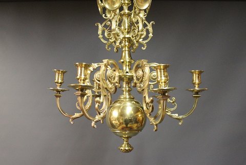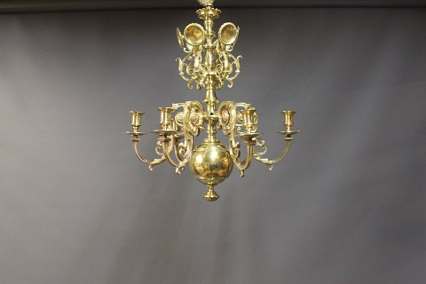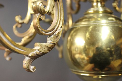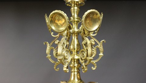 SolgtKirkekrone i messing og smukt dekoreret. Kirkekronen er fra ca. 1850 og Danmark. Den har aftagelige arme og plads til fire lys.